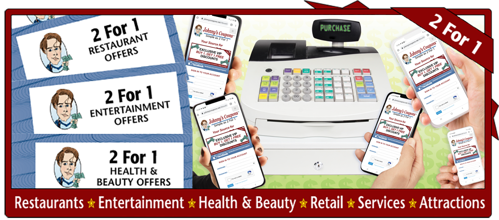 Johnny's 2 For 1 Coupon Books are available to groups and individuals through a variety of ordering options.